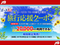 JTBは、自社で展開する国内旅行商品「エースJTB」の旅行予約が1万円お得になる旅行クーポンを2017年1月10日午前10時より販売を開始し …